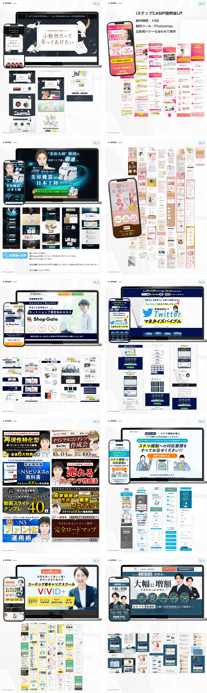 専門 LPデザイン 得意ジャンル スタイリッシュ/お堅め/ビジネス系/D2C系/ギラギラ系 経験業種 通販/TV/学習塾 年数 5年以上 経歴